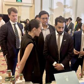 Ông Ahmed Bin Sulayem đánh giá cao sản phẩm của Việt Nam Quốc Yến và nhận định rằng yến sào là một sản phẩm tiềm năng cao cho thị trường Trung Đông.